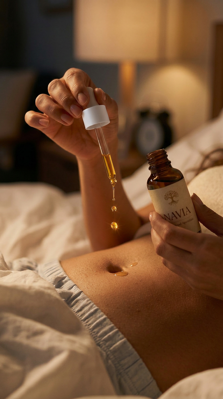 2-3 gotas directamente en el ombligo antes de dormir. Masajeá en movimiento circular en sentido horario por 1 minuto. Limpiate el ombligo a la mañana siguiente.