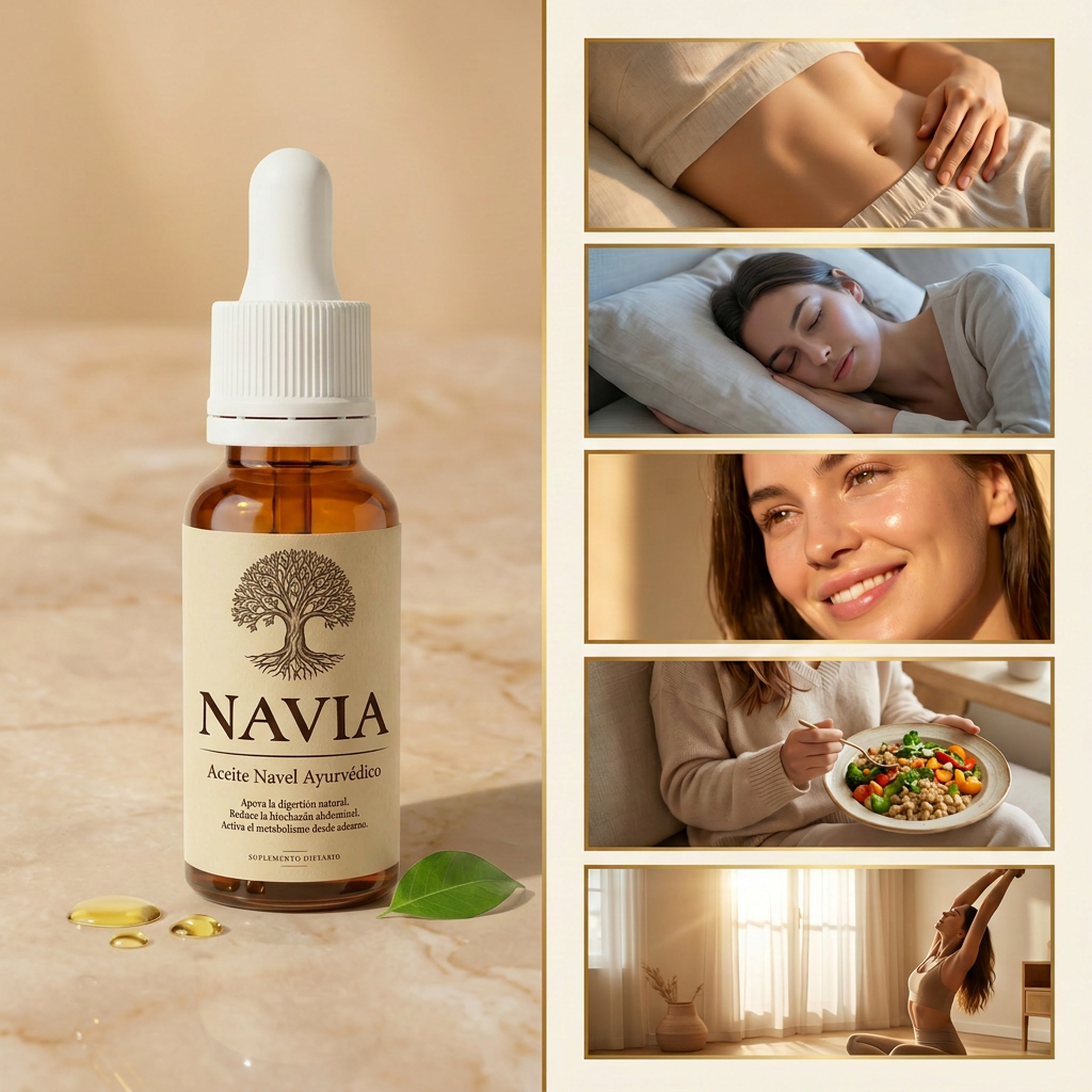 Sí. El ombligo tiene la capa de piel más fina del cuerpo y está rodeado de miles de terminaciones nerviosas conectadas directamente a los órganos digestivos, el metabolismo y el sistema hormonal. En Ayurveda esta práctica existe hace más de 5.000 años y es usada por millones de personas en toda Asia. Navia potencia ese efecto con un proceso de infusión de 72 horas y el Malkangani como activador natural.